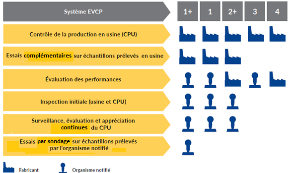 L’EVCP doit permettre d’établir une Déclaration des Performances précise et fiable. En fonction du système EVCP, le fabricant devra faire faire appel à un ou plusieurs organismes notifiés pour mener à bien les tâches afférentes.